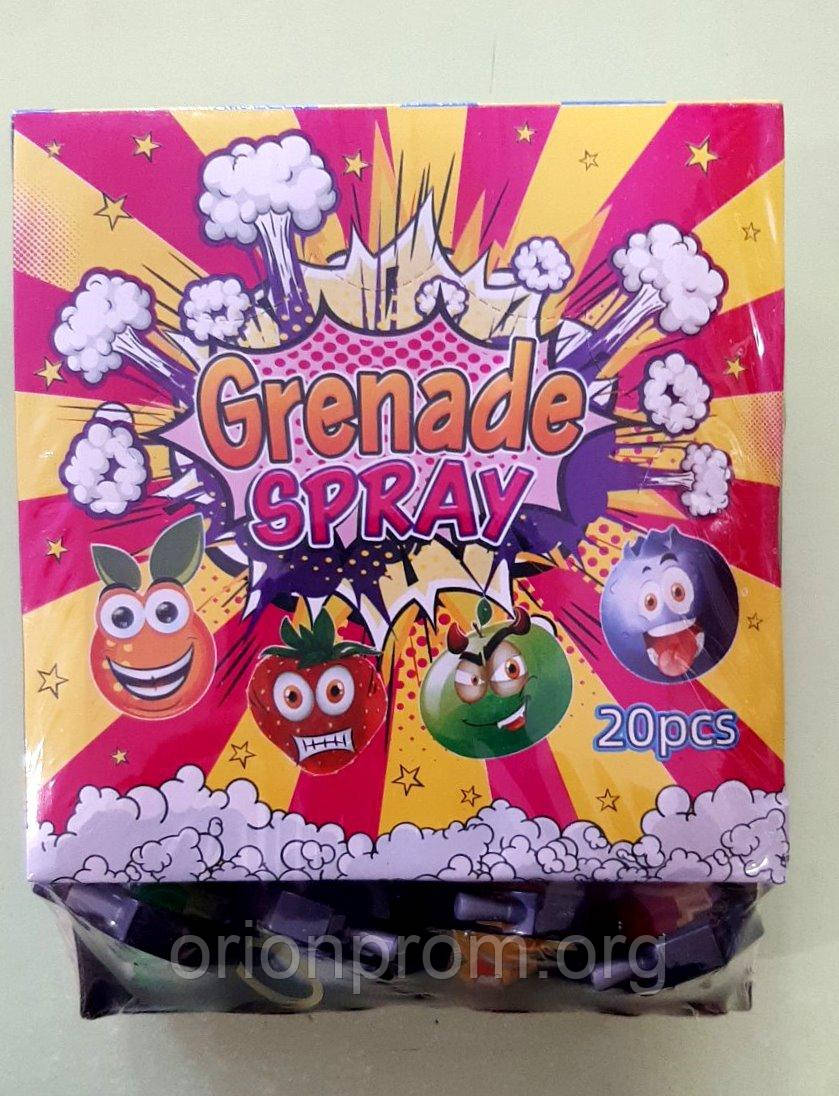Grenade Spray - це рідка цукерка-спрей у флакончику у формі гранати. У коробці асорті смаків.